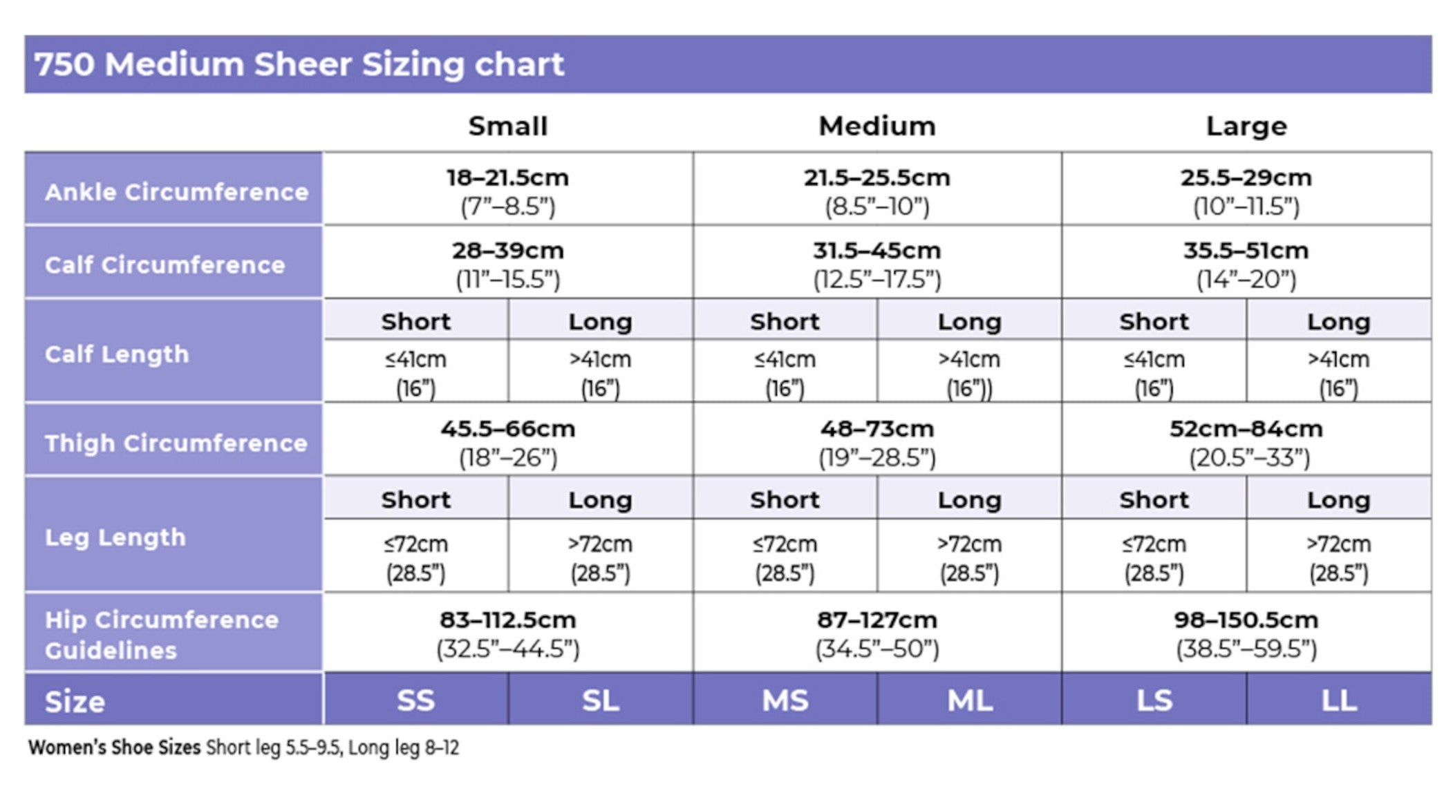 750 Series size Chart -